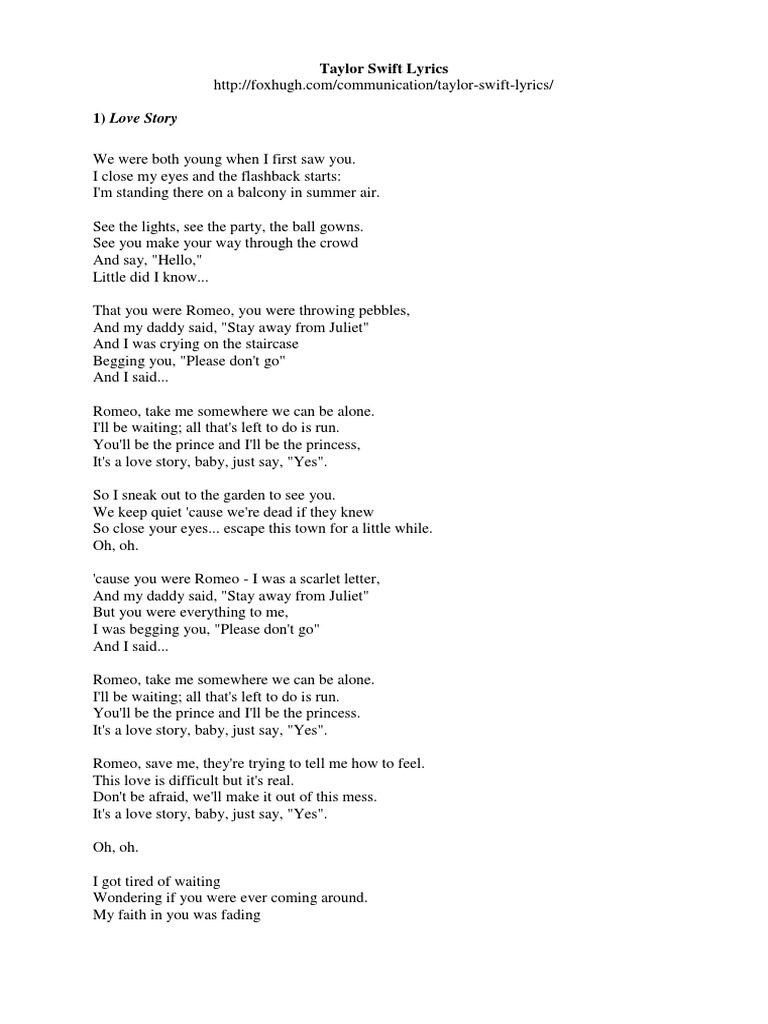 Taylor Swift Love Story Lyrics Genius Lyrics