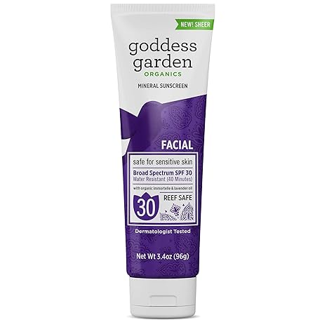 Amazon Com Goddess Garden Facial Spf 30 Mineral Sunscreen Lotion Sensitive Skin Reef Safe Sheer Zinc Water Resistant Vegan Leaping Bunny Certified Cruelty Free Non Nano Travel Size 3 4 Oz Tube Beauty